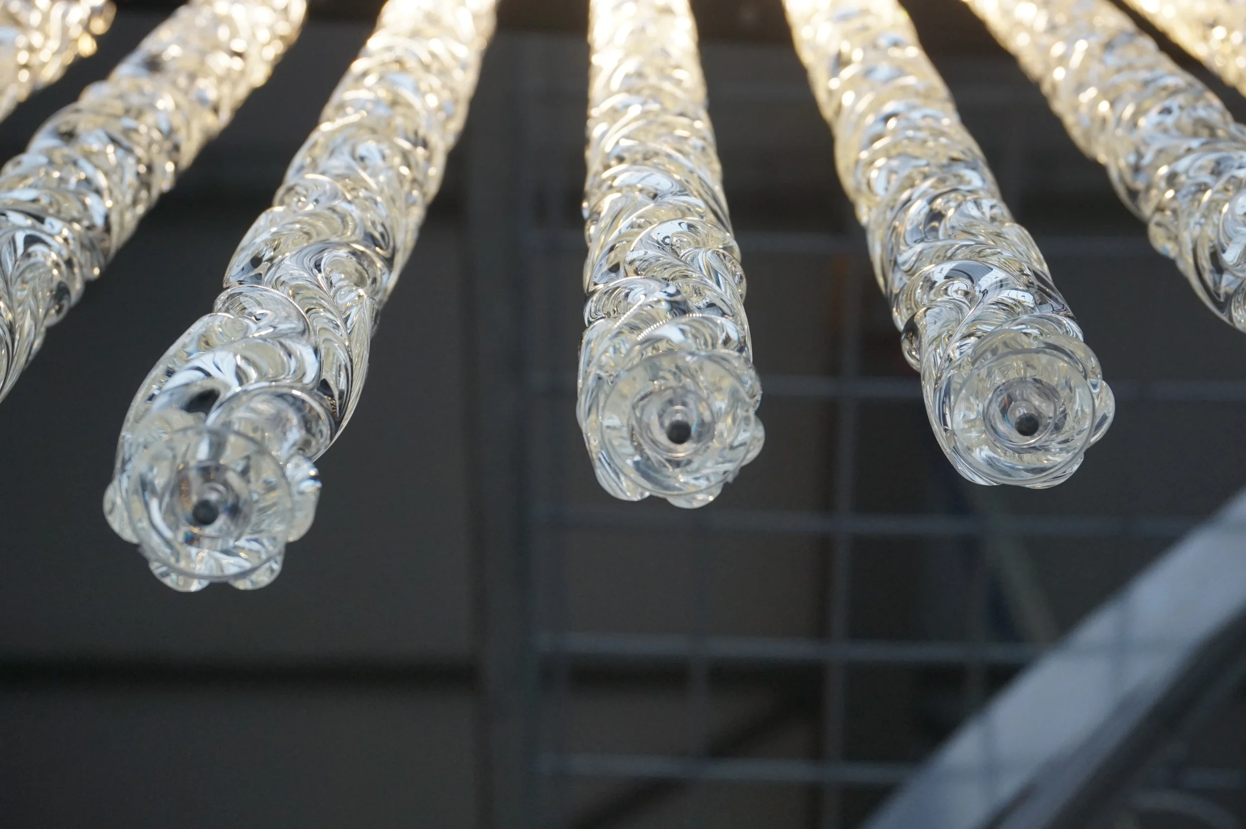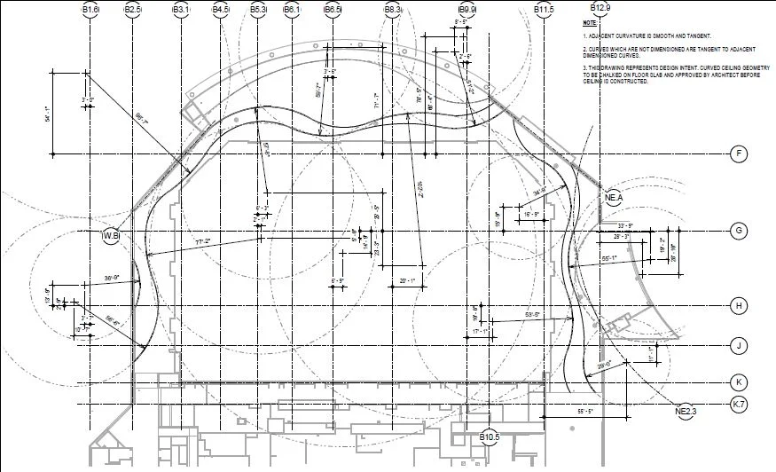 Demolition, renovation, and addition to an existing convention hotel in San Diego on the bay. A new 35,000sf Exhibit Hall and a 35,000sf Ballroom, with each level served by Prefunction space. Ceilings for each space are designed to reference the water of the San Diego Bay. The Prefunction ceilings suggest lapping water touching land, while the Exhibit Hall and Ballroom ceilings conjure the rolling waves out at sea. The Ballroom ceiling is conceived as a chandelier and features crystal rods in undulating rows. The center area of each ceiling is emphasized through its geometry and color-changing illumination.